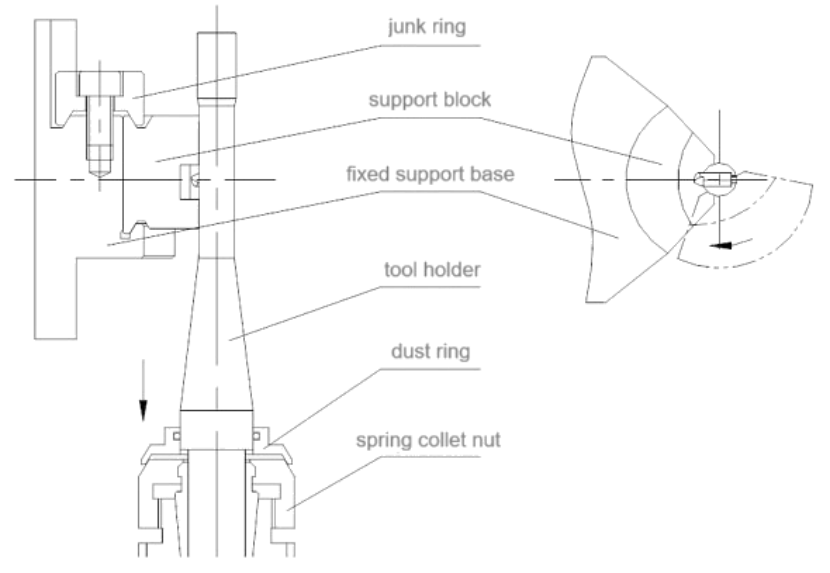 ● Struktura podpěrky řezačeného muškařů vychází z vlastností stejného typu strojních strojů v Itálii. Blok podpory je podporován povrchem oblouku, který má dobrý účinek na podporu; Cutter Arbor je upevněn s maticí pružinového sklíčidla; Současně se v horní části řezacího altánu používá pohyblivá špička ke zlepšení rigidity a přesnosti řezacího altánu. Clubce má rozumnou strukturu, což mu dává vysokou rigiditu a vysokou přesnost.
